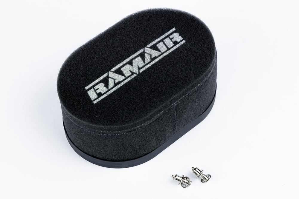 Ramair’s hugely successful range of filter kits, designed to bolt directly to the carburettor body, is used widely in both competition and street applications. The element is of sturdy construction, supported by a stainless steel cage and provides maximum surface area to optimise the airflow for induction ramming. The range of baseplates are cut for a variety of well known carburettor types and have quick-release fasteners to attach the element.